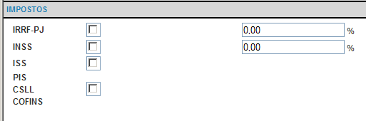 O controle de impostos funciona para dar tratamento a impostos relacionados a serviços, sendo abrangente tanto para a parte de contas a pagar, quanto para a parte de contas a receber. Na prática, quando um lançamento é feito, considerando as configurações feitas nos cadastros de clientes ou fornecedores, poderá haver o cálculo para realizar retenções de impostos. Os impostos aplicáveis são: impostos de renda, ISS, PIS/COFINS, CSLL. |