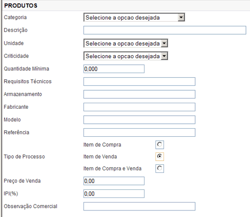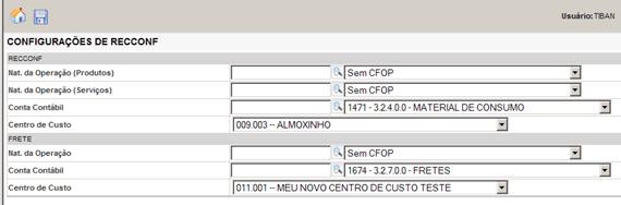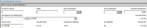 Nota Fiscal: Apresenta os campos de configuração da nota fiscal para
