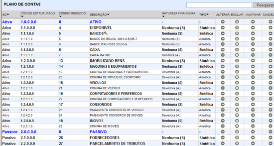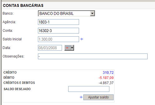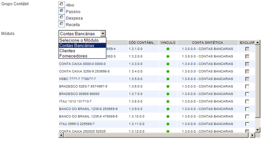 Bancária: Retorna as contas bancárias cadastradas, informando os saldos