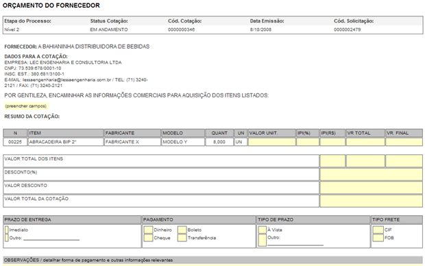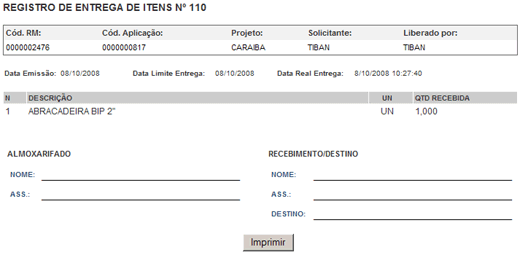 impressão no formulário de nota fiscal que a empresa utiliza, conforme