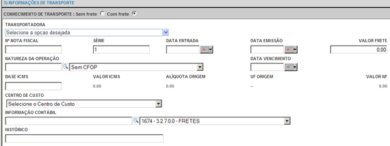 Contábil: Define para qual conta contábil deve ser alocado o valor bruto