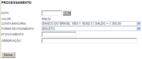 o Os registros devem ser marcados resultando num valor total, assim, a próxima etapa já será gerar a obrigação de pagamento no sistema de contas a pagar de forma automatizada. A tela deve retornar com a seguinte diferenciação, sendo aqui o valor do pagamento já fixo e definido: