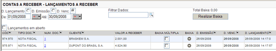 Após a baixa, o registro do título sai da lista de contas a receber e passa para a lista de contas recebidas. Caso deseje, o usuário poderá desfazer a baixa, indo através da lista de contas recebidas e desfazendo a operação na opção de Alterar o Status. |