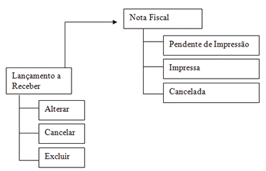 Toda nota fiscal é vincula a um lançamento no sistema de contas a receber. Por sua vez, os lançamentos de contas a receber podem ser vinculados também a um pedido de venda ou a uma medição. Assim, o sistema controla o fluxo dessas informações e estabelece regras de integridade referencial, evitando que não haja uma quebra no relacionamento entre cada parte do processo. Em resumo a relação dos lançamentos e das notas pode ser vista: